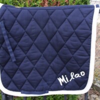 Comme Nannette est gaga de moi, Elle m’a fourni plein de choses, étiquettes pour la sellerie, plaques de box, collection de tapis de selle, etc… Et à Ivanohé également…