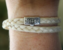 Elle a fait fabriquer un collier et des bracelets avec mes crins et ceux d’Ivanohé par Créa-crins. Site web. Linda Marion fait des bijoux magnifiques et assure leur réparation si besoin.